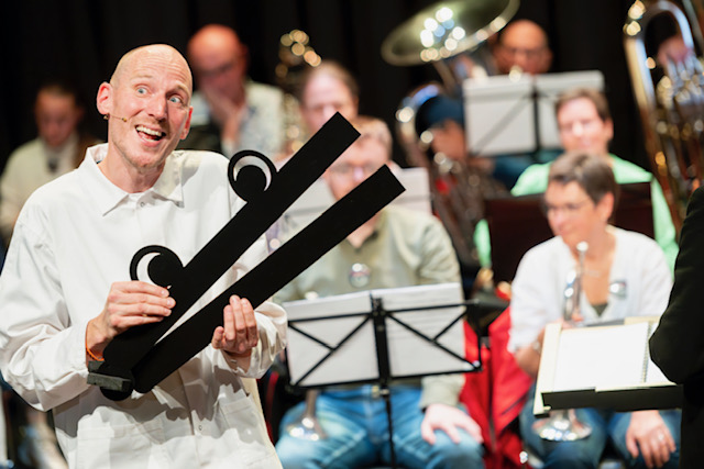 De terughoudendheid bij muziekverenigingen heeft volgens hem te maken met angst voor het onbekende en conservatisme. ‘We hebben de reactie van die dirigent letterlijk in de voorstelling opgenomen: ‘we doen het al jaren zo’.’